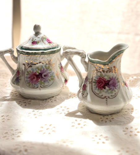 VINTAGE PORCELAIN CREAMER AND SUGAR BOWL